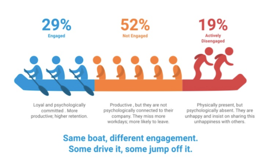 Unfortunately, this is something that many businesses struggle with. Only a small percentage of the workforce is actually engaged.