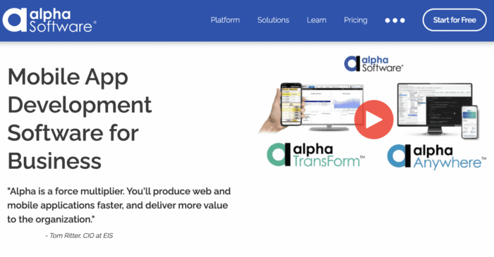 It offers two different Alpha app development solutions—Alpha TransForm and AlphaAnywhere.