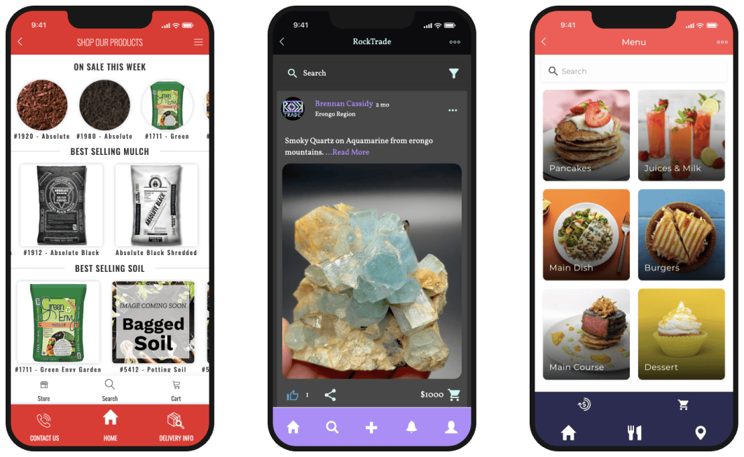 Seamlessly integrate your existing Shopify site to create a mobile commerce app. You can also sell digital goods within the app by connecting third-party systems and integrations that you’re already using, like Stripe, ordering plugins, and more.