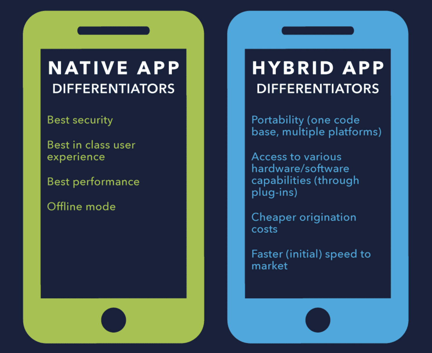 A native mobile app is built for a specific type of operating system, like iOS or Android. Hybrid mobile apps can run on multiple operating systems.