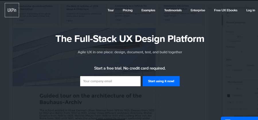 It allows you to do your designs in the program or from either Photoshop or Sketch and import same to UXPin—you can create interactive workflows and wireframes within a short period of time.