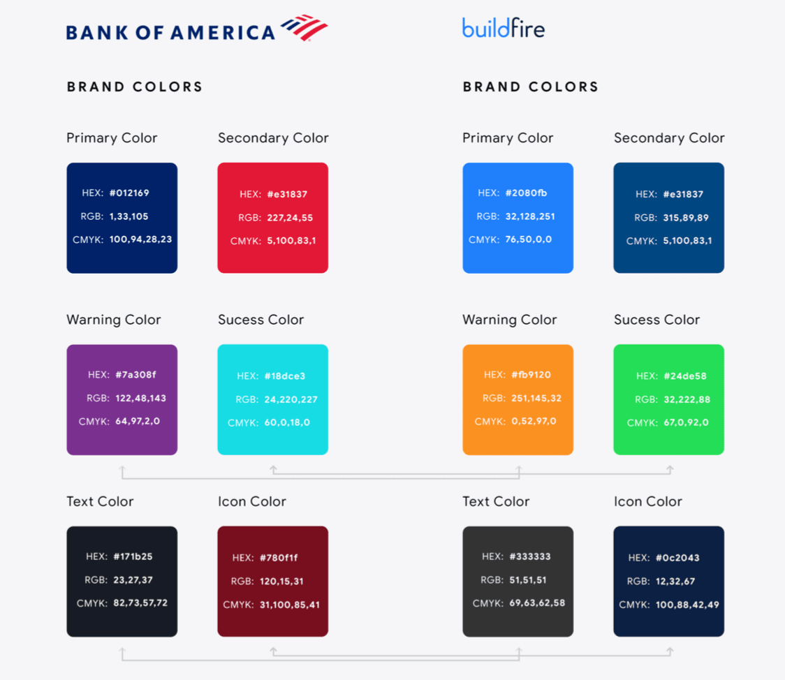 The color palette should include your brand colors, primary color, a secondary color, warning color, success color, text color, icon color, and more.
