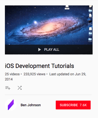 With less than 4,500 subscribers, this definitely isn’t the most popular channel on YouTube. But with that said, the tutorials are extremely informative. Even without a ton of subscribers, his iOS application development tutorial has more than 134,000 views.