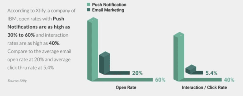 That’s because push notifications appear on a user’s mobile device similar to a text message. The chances of them reading it and opening the message are much higher than a promotional email buried in someone’s inbox.