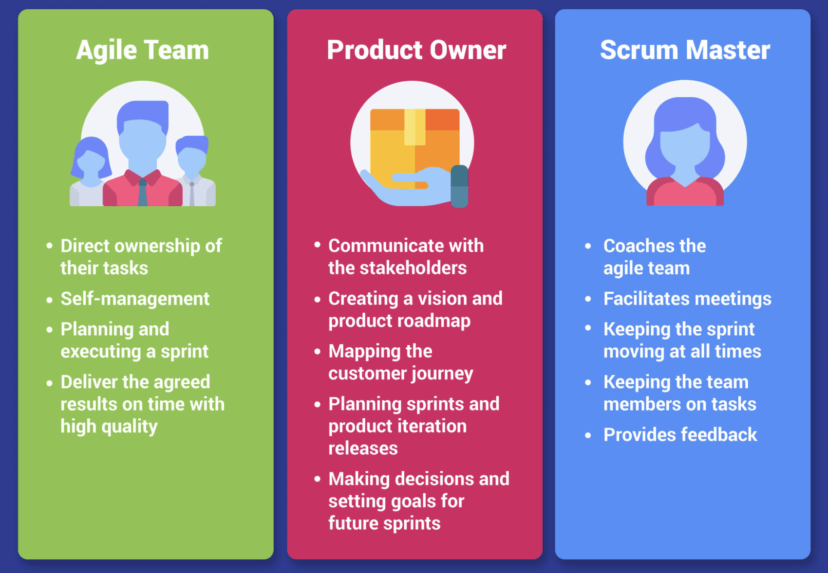 Each team member has a specific role to play in the development process, and understanding these roles is essential to the success of an Agile project. Every Agile team has a product owner and a Scrum Master.